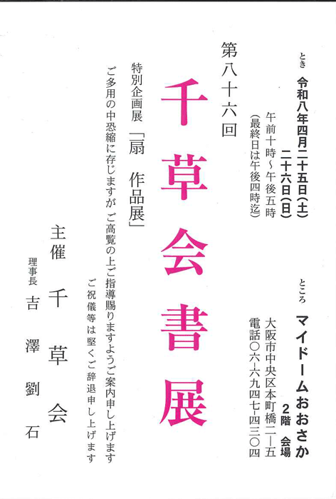 | 予定 ⇒ 開催の詳細は案内はがき/パンフレット等が届きました時点で掲載します。 |