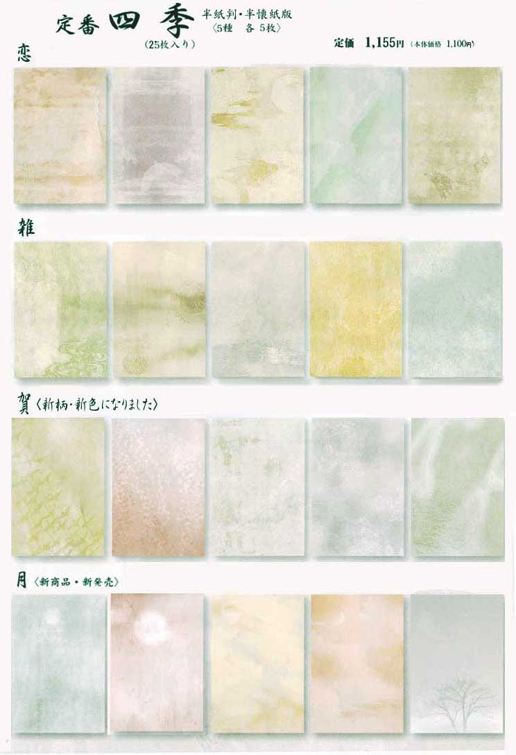 各シリーズとも半懐紙判・半紙判があります。一冊「5種×5枚=25枚入」